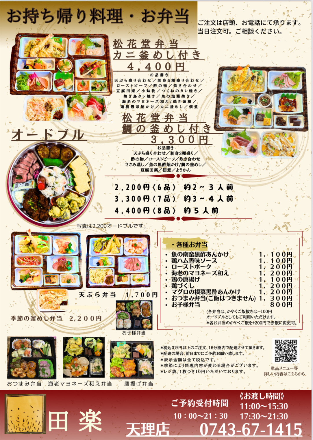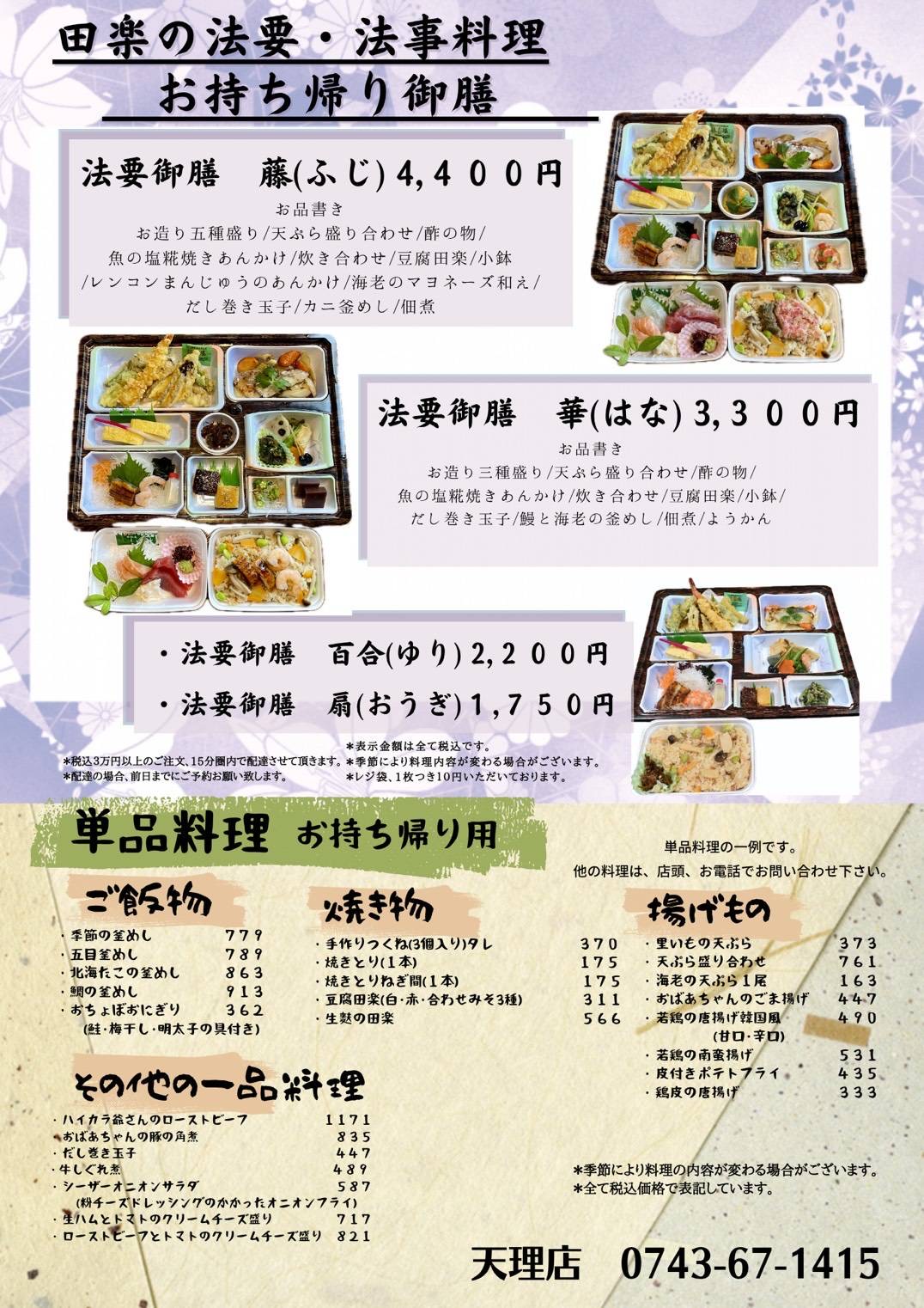 <田楽のお持ち帰り弁当>